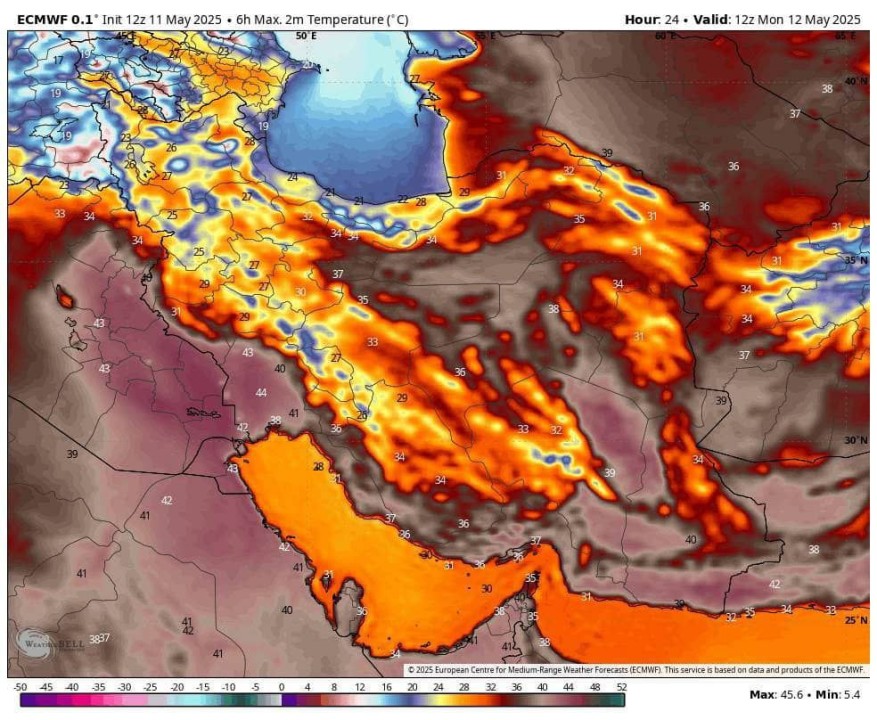 بر اساس پیشبینیهای این سازمان، دمای هوا در تهران طی این دو روز به حدود 40 درجه سانتیگراد یا بیشتر خواهد رسید. در مناطق جنوبی کشور از جمله ایلام، خوزستان و سایر نقاط گرمسیر، احتمال عبور دما از مرز 50 درجه سانتیگراد نیز وجود دارد.