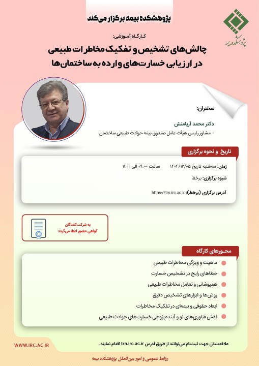 این کارگاه آموزشی با هدف ارتقای دانش تخصصی کارشناسان، ارزیابان خسارت و فعالان صنعت بیمه در حوزه تشخیص دقیق خسارتهای ناشی از مخاطرات طبیعی برگزار میشود.