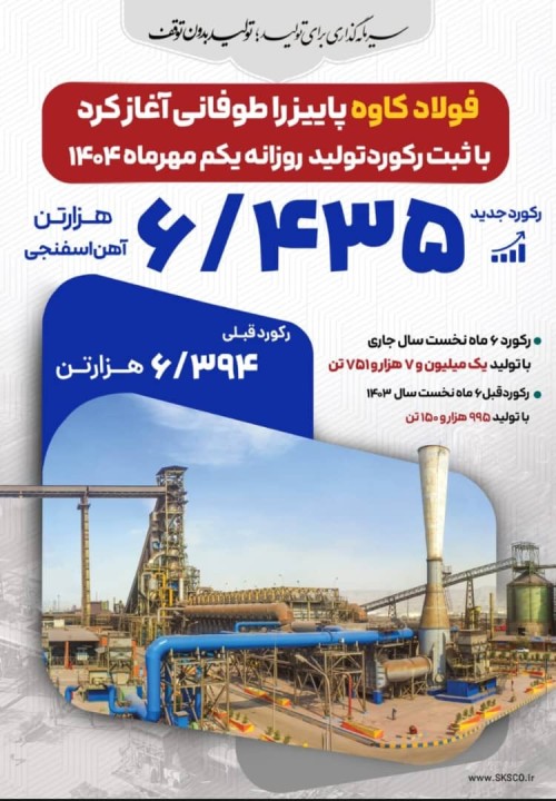 دکتر حاتمی، مدیرعامل شرکت فولاد کاوه جنوب کیش، با تبریک این دستاورد به خانواده بزرگ sks گفت: در نخستین روز مهر، یلان پرتلاش واحد آهنسازی با روحیه جهادی و همت بلند، رکوردی تازه در صنعت فولاد کشور رقم زدند. این موفقیت حاصل همدلی، تخصص و پشتکار کارکنان عزیز و همراهی ارزشمند معاونت محترم بهرهبرداری است. وی افزود: افتخارآفرینی شرکت فولاد کاوه جنوب کیش فقط به رکورد روزانه محدود نمیشود؛ در 6 ماه نخست سال جاری، با ثبت یک میلیون و 7.751 تن تولید، نسبت به مدت مشابه سال گذشته با 995 هزار و صد و پنجاه تن، رشد 12هزار و 601 تنی داشتهایم که نشانگر روند رو به رشد و پایداری تولید در این مجموعه است. مدیرعامل sks با یادآوری رکورد پیشین گفت: رکورد قبلی واحد آهنسازی در چهارم فروردین 1404 با 6 هزار و 394 تن ثبت شده بود و امروز، با دومین رکورد در سال جاری، مسیر رشد و تعالی را ادامه میدهیم. وی در پایان ضمن تقدیر از کارکنان عنوان کرد: صبر و تلاش شبانهروزی همکاران در خط مقدم تولید، افتخاری برای صنعت فولاد ایران است و اطمینان دارم قلههای بیشتری پیشروی فولاد کاوه خواهد بود. شرکت فولاد کاوه جنوب کیش، از مهمترین تولیدکنندگان فولاد کشور است که با ظرفیت بالای تولید و بهرهگیری از فناوریهای نوین، نقش برجستهای در تأمین نیازهای داخلی و صادراتی دارد. sks با اتکا به نیروی انسانی متخصص و تعهد به کیفیت، در مسیر توسعه پایدار صنعت فولاد ایران گام برمیدارد.
