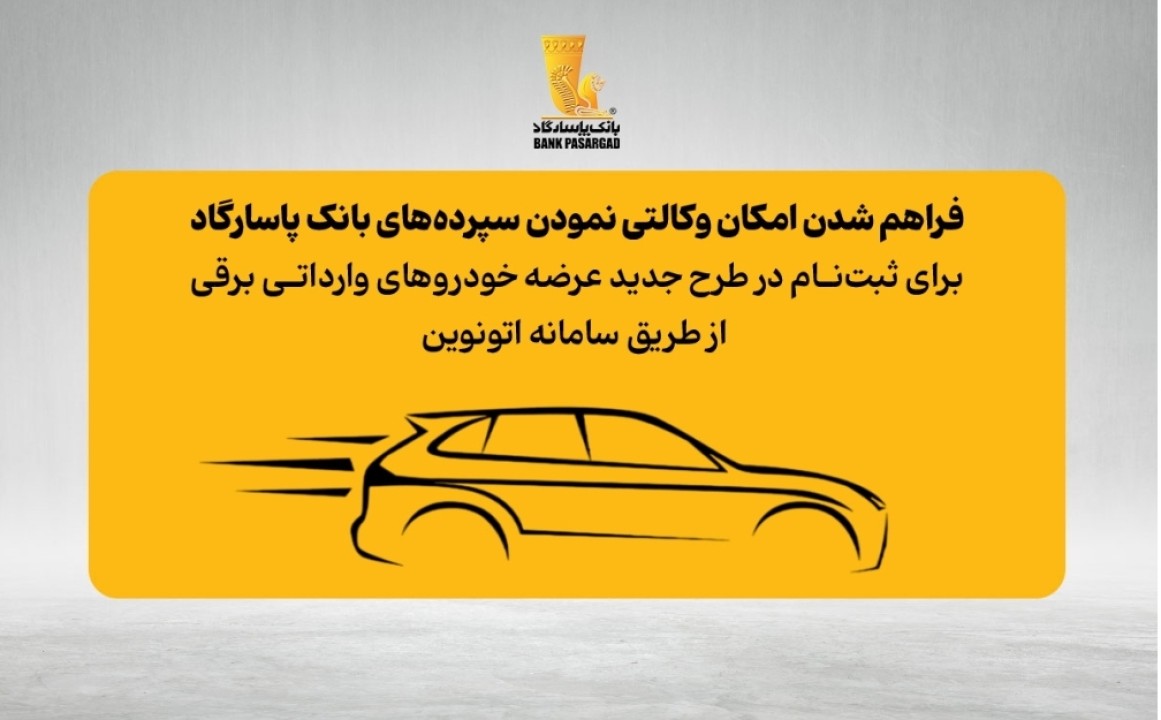 امکان وکالتی نمودن سپرده‌های بانک پاسارگاد برای ثبت‌نام در «طرح جدید عرضه خودروهای وارداتی برقی»